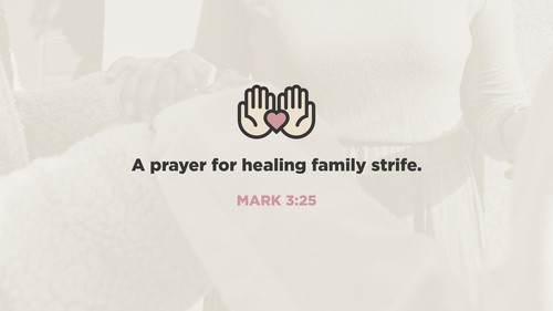 "Lord, your Word says, 'A family splintered by feuding will fall apart.' Satan is attacking my family, and I'm turning to you for help. Your Word says, 'When the enemy comes I like a flood, the Spirit of the Lord will [be my defense and] lift up a standard against him' (Isa 59:19 NKJV). Touch the hearts and minds of every member of this family, and draw them closer to you. You said, 'Blessed are the peacemakers: for they shall be called the children of God' (Mt 5:9). I commit myself to be a peacemaker in this situation, and ask you for the wisdom to know what to say and do. Deliver my family from selfishness, pride, and bitterness. Give us the sort of love that covers all sins and weaknesses (See Pr 10:12). Help us to know when a disagreement is about to open a floodgate, and give us the grace to drop the matter before the clash gets out of control (See Pr 17:14). Your Word says that avoiding a fight is a mark of honor, and that only fools demand to quarrel (See Pr 20:3) Lord, put and end to the strife that is wrecking havoc in our family. I take authority over every contentious spirit. I ask you to help my family start to pursue things that produce peace and the things we can use to edify and build one another up (See Ro 14:19). Your Word says that there is nothing too hard for you (See Jer 32:17). So, I'm praying and believing for healing and restoration I my family. In Jesus' name. Amen."