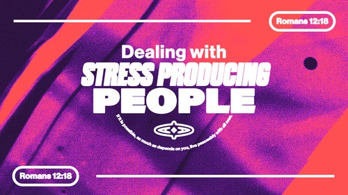 At times it's possible to be at peace with certain people. Recognizing this reality, the apostle Paul, in essence, said, "Do all that you can to try and make it happen." Besides the covenant relationship you have with your husband or wife and your responsibility for your children, if you're wise, you will prayerfully evaluate your other relationships and know how much time you should invest in them. For example: If you have a close relative who is always argumentative or negative, don't put yourself in a position where you have to interact with them on a regular basis. Only holidays together may be enough! The same is true for friends. Those who gossip, condemn others, compete with you, or engage in cutting remarks should rarely find you available--unless the Lord impresses you to spend some time with them to impart His Word. You are not commanded to spend time with people who disturb your peace. Solomon said, "Don't associate with hot-tempered people" (Pr 22:24 NLT). Paul warned, "Watch out for people who cause divisions...Stay away from them" (Ro 16:17 NLT) When you're in the company of a stress-producing person, ask yourself these questions: "Will this situation grow patience within me if I endure it rather than leave? Why am I continuing to interact with them?" Prayer: "Father, I need you to help me discern when and how to be with stress-producing people so that your love continually shines through me."